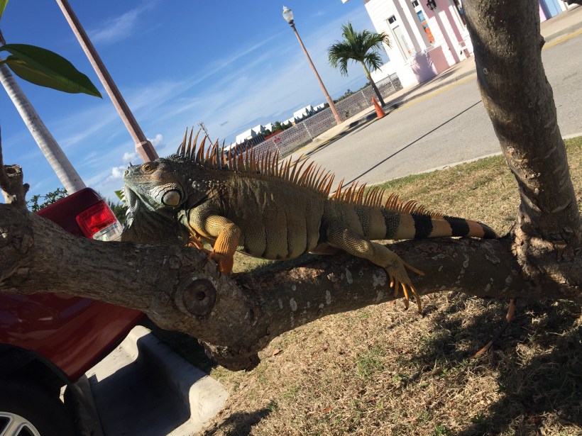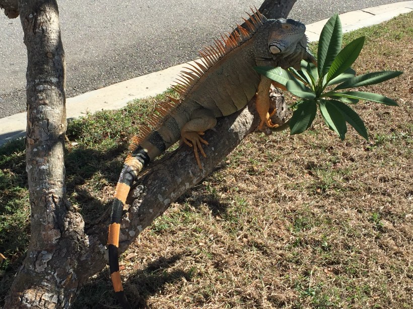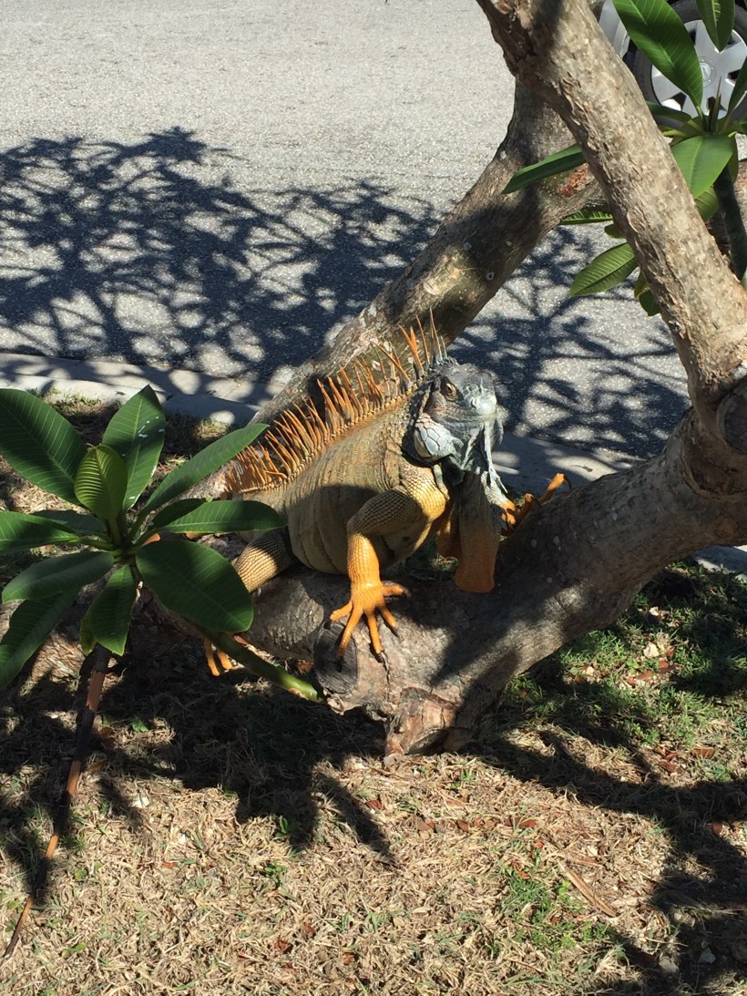… he was six foot long from nose to tail, huge easily the biggest iguana we have seen to date. As we stood watching him other people took interest and gathered round. The general consensus was he was a monster! A beautiful prehistoric monster!